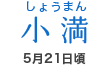 陽気が盛んになり、草木が生い茂る頃。麦に穂がつく季節でもあり、ほっと一安心(=少し満足)という意味もあります。湿気が徐々に多くなり、アトピー性皮膚炎などが出やすくなってきますので、熱の少ない食べ物を摂るようにしましょう。 |